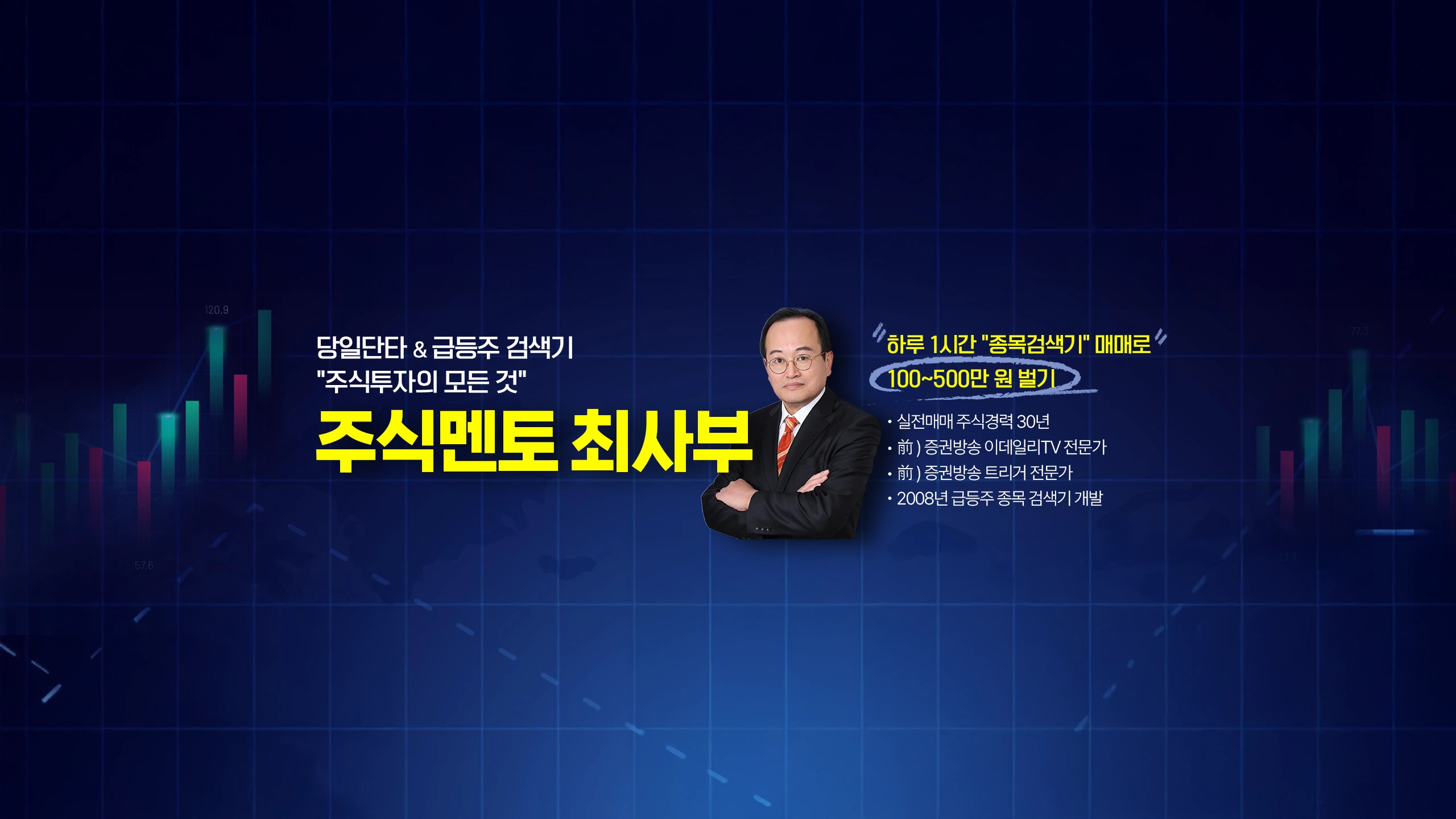 🎯 실전매매 30년 최고수 손절 없는 당일단타 & 급등주 "최사부 검색기" 매매 장 시작 10~30분 집중 당일단타 & 급등주! 주식멘토최사부 LIVE 방송! 장 마감 후 시황, 방송 지난 과거 이야기일 뿐! 헛소리 입니다. 📞 연락처 📱 010-5211-6774 📧 [email protected] 📈 주식 경력 30년, 방송 전문가 12년 📺 전) 이데일리TV · 트리거 전문가 💸 후원 안내 (방송 및 콘텐츠 제작 & 불우단체 소년소녀 가장 돕기 후원합니다) 새마을금고: 9003 - 2877 - 0979 - 3 (예금주: 최태훈) 📌 오늘 급등할 종목을 지금 바로 확인하세요! ⏰ 오전 10~30분, 단 30분의 승부! 💥 시장 주도주 중심의 수급매매로 상한가 도전! 💡 "좋은 회사"가 아니라 "돈이 몰리는 종목"을 잡아야 산다! 🎁 구독자 특혜 3가지! 1️⃣ 보유종목 무료 상담: 010-5211-6774 2️⃣ 1:1